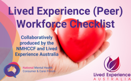 The National Mental Health Consumer and Carer Forum (NMHCCF) is hosting a webinar on its recently released Lived Experience (Peer) Workforce Readiness Checklist. This webinar is organised and held by the NMHCCF Mental Health Peer Workforce Working Group.