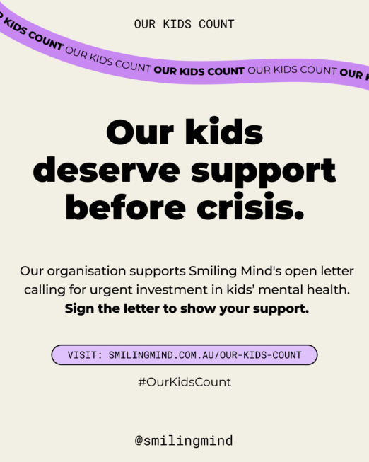 Call for sector support: Smiling Mind's Our Kids Count grassroots campaign